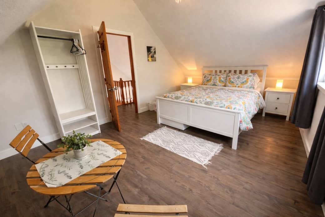 Main Floor Bedroom – Double bed with space for a playpen or infant setup